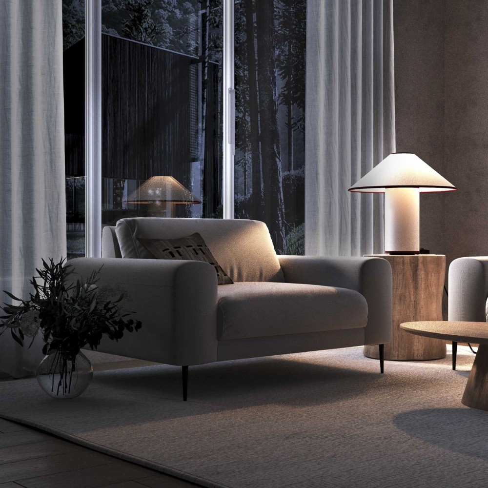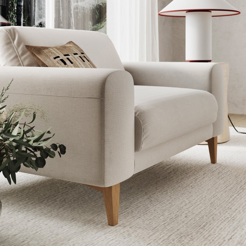 Широкое, основательное кресло на высоких ножках-шпильках. Благодаря контрасту объемного скругленного силуэта и утонченных опор приобретает провокационную нотку. ОСОБЕННОСТИ КРЕСЛА JOY Широкое кресло сочетает свободу и уверенность с расслабленностью. Выверенная геометрия напоминает о скандинавской сдержанности. Обивка с выраженной текстурой подчеркнет шарм кресла. Кроме обивочной ткани на фото, на заказ доступны обивки из натуральных, синтетических и смесовых материалов в разных фактурах и оттенках. Большинство из них просты в уходе, а некоторые устойчивы к загрязнениям и воспламенению.\^ Каркас и пружины Мебель из массива хвойных пород экологична и обладает высокой прочностью, не трескается и не деформируется. Березовая фанера в местах повышенных нагрузок усиливает конструкцию. Стальные зигзагообразные пружины NOZAG расположены в основании горизонтально, скрыты эластичной тканью и обеспечивают эргономичность и износостойкость сиденья. Наполнители В посадочных подушках пенополиуретан HR. Изготовлен в Финляндии с соблюдением экологических нормативов. Слой синтетического полиэфирного волокна создает аккуратный контур сиденья. Съемные подспинные подушки наполнены холлофайбером. Гладкие волокна скручены в спираль и не сцепляются друг с другом, поэтому подушки сохраняют объем надолго. Материал не удерживает влагу, возникновение микроорганизмов исключено. Ножки Металлические ножки высотой 15 см, хромированные или в черном цвете. Модели можно кастомизировать тонкими трапециевидными ножками из дерева в оттенках: • промасленный дуб; • черный дуб.