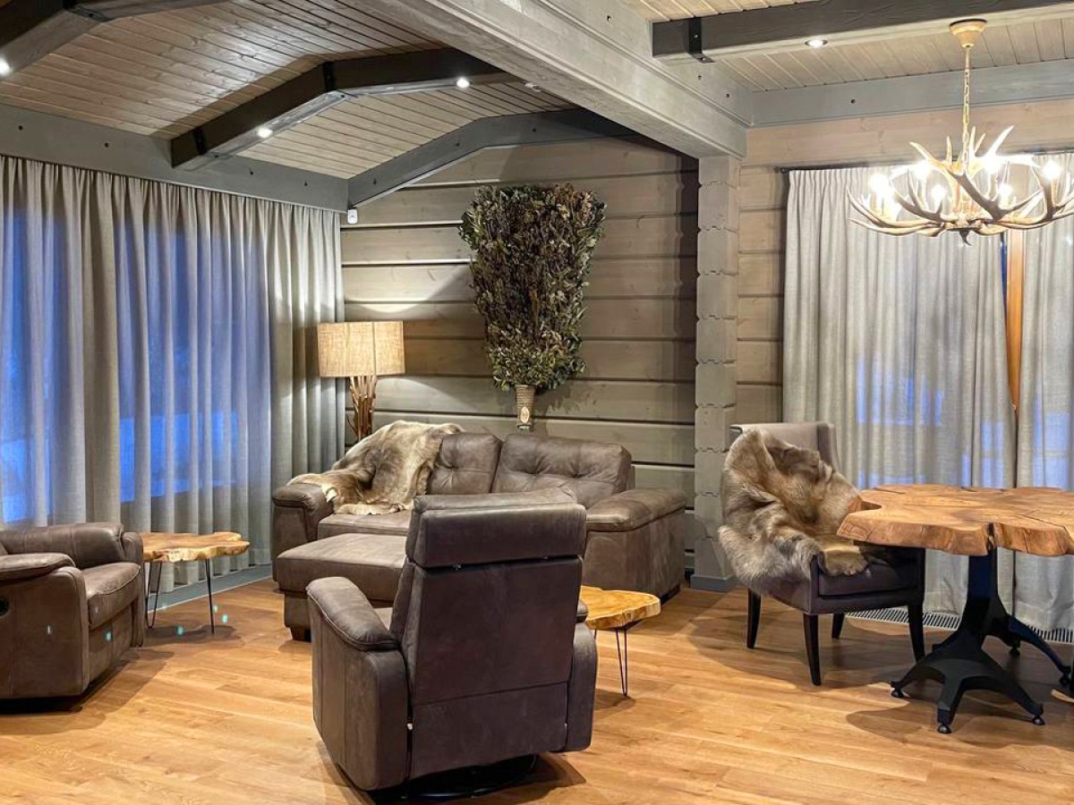 Перед архитектором Артемом Зверевым и дизайнером Анной Зверевой стояла задача преобразить интерьер комнаты отдыха в банном комплексе из клееного бруса – подобрать мебель, светильники и декор так, чтобы пространство отражало черты стиля кантри и альпийского шале.
