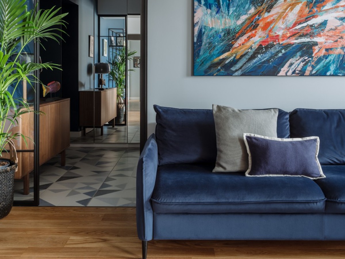 Главная идея интерьера, который дизайнеры создавали для себя – преобразовать длинную коридорную систему старой сталинской квартиры в открытое и современное пространство, присоединив площади коридоров к жилым помещениям и объединив кухню с гостиной-столовой.