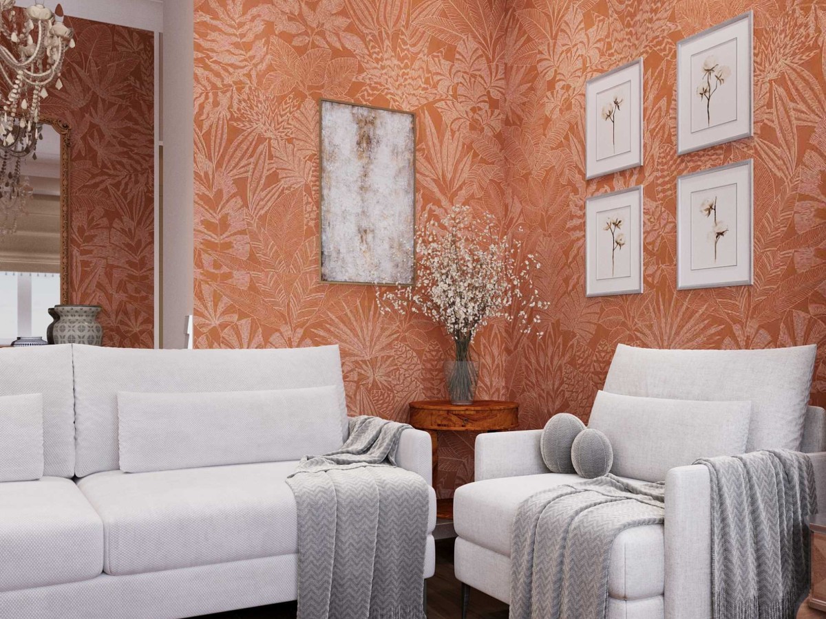 Обивка мягких стульев выполнена в одном из любимых оттенков автора: терракотовый сочетается с палитрой отделки стен.
