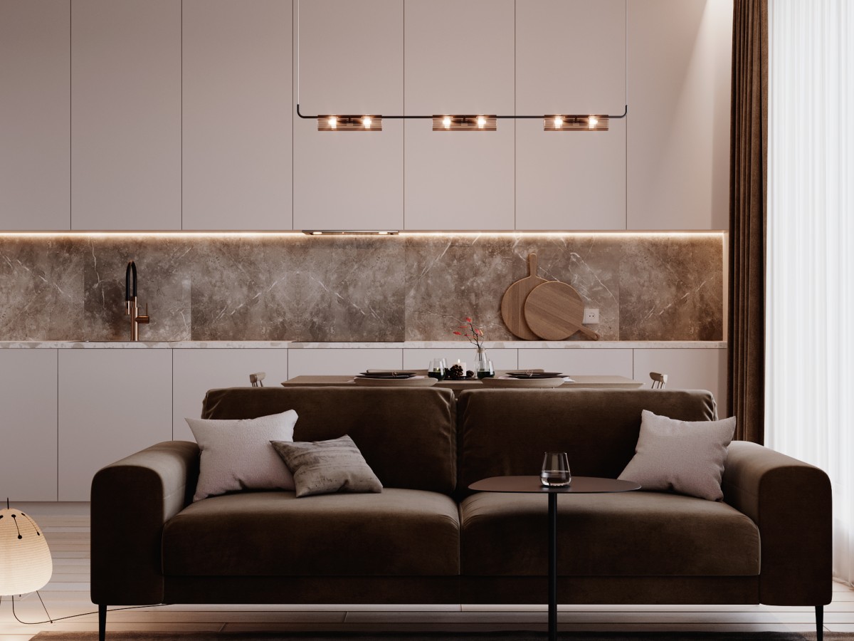 Перед дизайнером Полиной Журавлевой стояла задача воплотить минималистичный, не перегруженный деталями интерьер, и при этом отразить особую любовь заказчицы к кофе и шоколадному цвету.