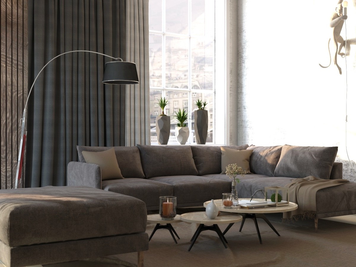 Цвет обивки приближен к цветовому решению всего помещения - сероватые и землистые цвета.